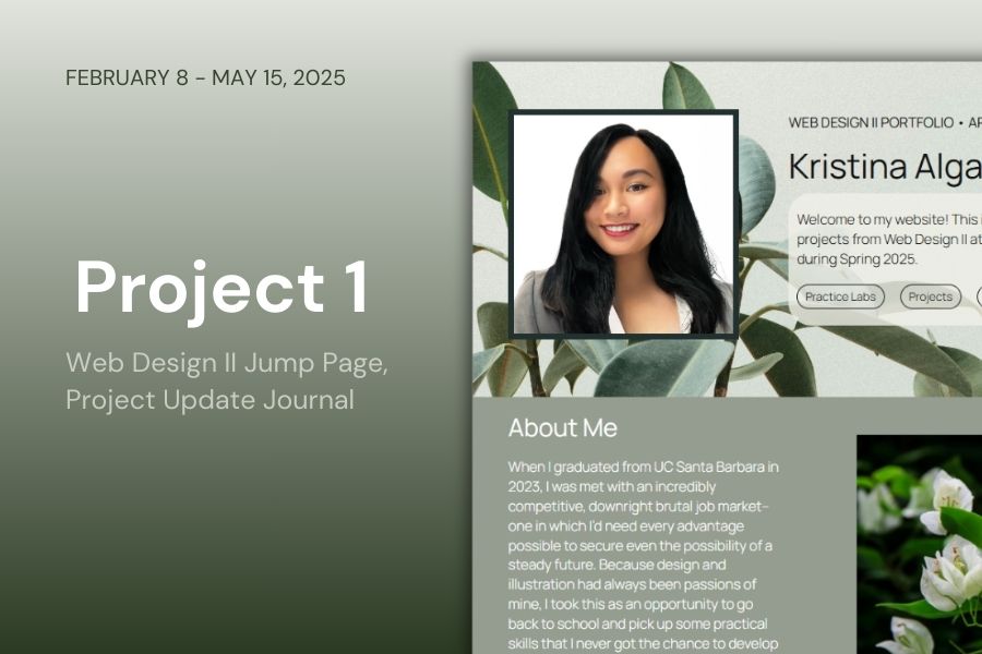 The first project for this course is my Web Design II Jump Page– the very page you’re seeing now! This website was made on WordPress.com with modified assets from the Free Plan, with the project journal being updated throughout the semester.